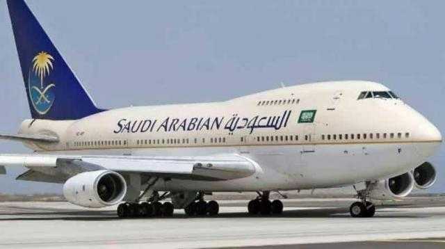 طائرة مدنية تحمل العلم والشعار السعودي تهبط بمطار صنعاء الدولي