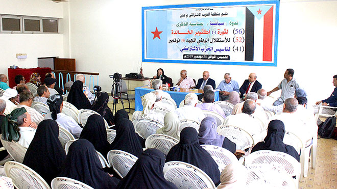 أحيا الحزب الاشتراكي، أمس الأول، بمحافظتي حضرموت وعدن، الذكرى الـ (52) للاستقلال الوطني، والذي تزامن مع الذكرى الـ (41) لتأسيس الحزب الاشتراكي والذكرى الـ 56 لثورة 14 أكتوبر الخالدة.
