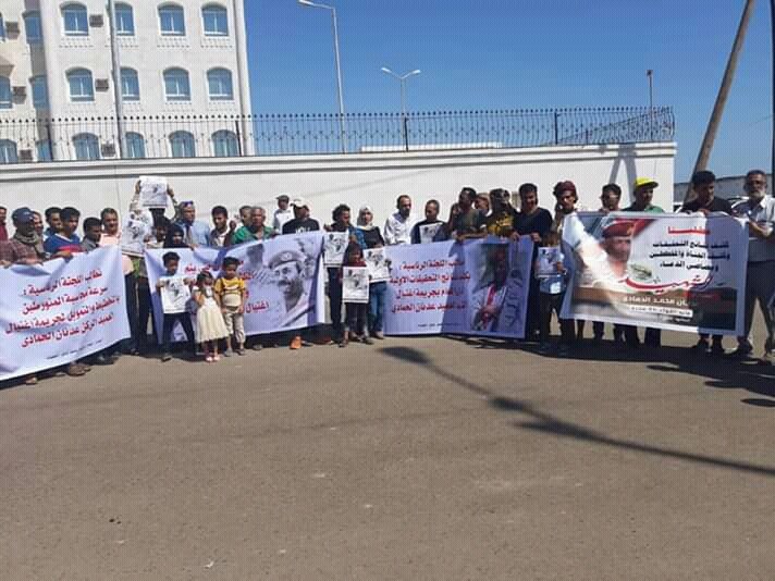 احتجاج أمام مكتب النائب العام بعدن يطالب بالكشف عن قتلة الحمادي