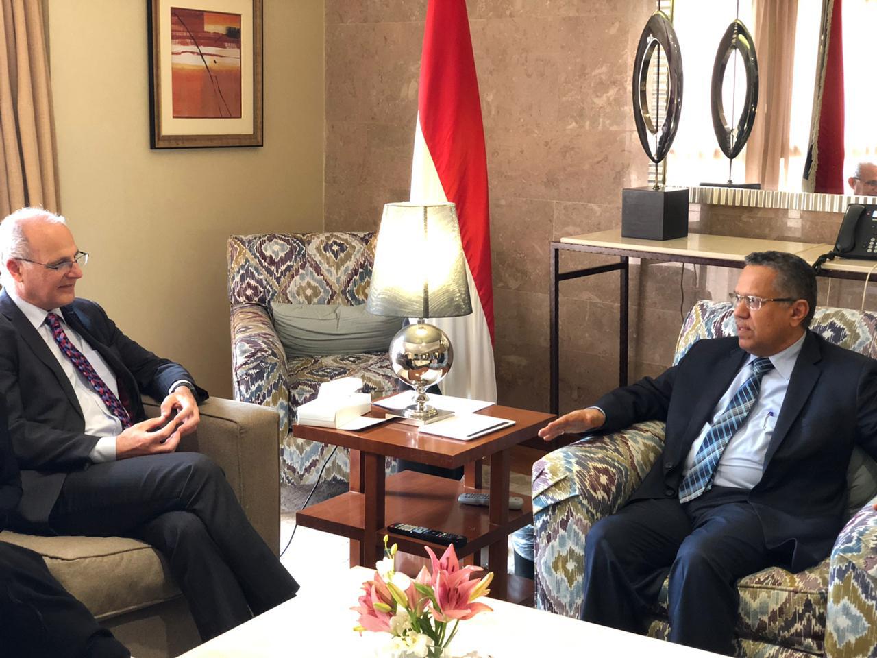 جاء ذلك خلال لقائه بالسفير البريطاني مايكل أرون اليوم لمناقشة عدد من القضايا الهامة ومنها تنفيذ اتفاق الرياض.