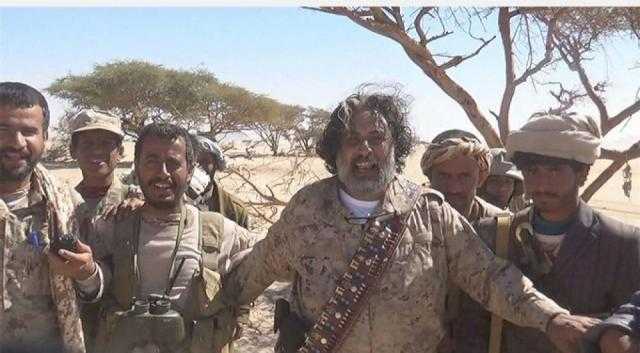 وظهر اللواء العكيمي وسط مجموعة من العسكريين في منطقة اليتمة التابعة لمديرية خب والشعف، القريبة من الحدود السعودية، بعد دحر المليشيا منها اليوم.