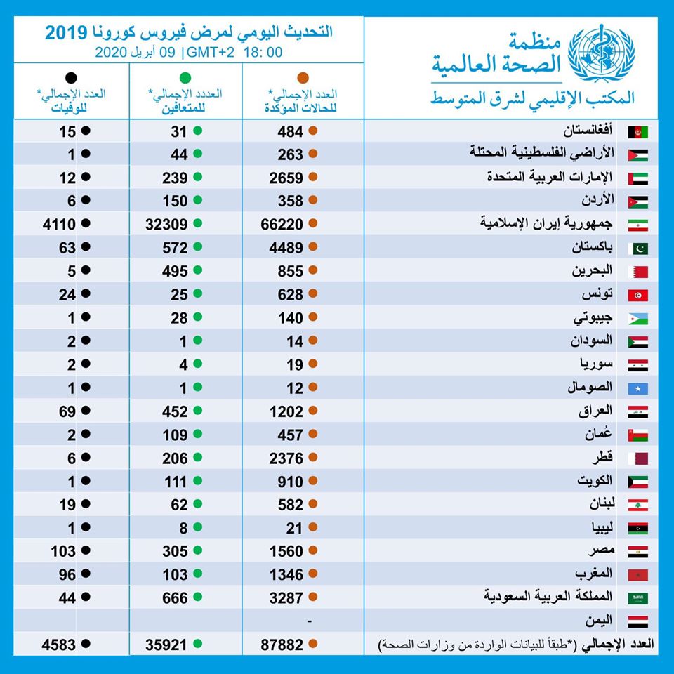 الرئيسية - أخبار محلية - ورد للتو.. شاهد التحديث اليومي من منظمة الصحة العالمية حول عدد الإصابات بكورونا في الدول العربية من بينها اليمن.. صورة..
