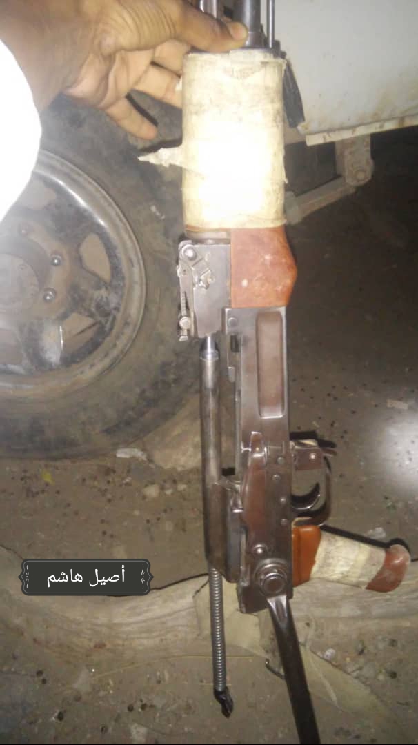 نشر ناشطون على مواقع التواصل صورة لبندقيه قيل إنها بندقية الشهيد ناجي عبدالله صالح البرطي من أبناء حجر قرية غول السقمة.