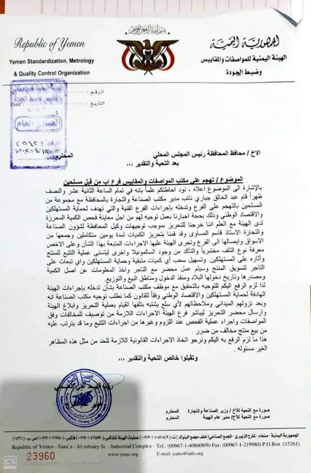 وأوضحت المصادر ان العناصر الحوثية قاموا بالتلفظ بألفاظ نابية على مديرة مكتب المواصفات والجودة الأستاذة ريا العنسي، مطالبين منها إعطاءهم كمية من مواد غذائية منتهية الصلاحية تم تحريزها من قبل الهيئة.