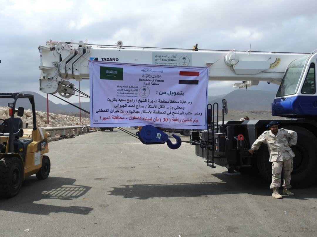 كما دشن وزير النقل، ومعه مع مدير مكتب البرنامج السعودي عبدالهادي القحطاني وصول رافعة للميناء (30) طناً، مقدمة من البرنامج السعودي للتنمية والإعمار..مثمنا دعم الحكومة السعودية، لجهود التنمية في بلادنا في ظل الظروف الصعبة التي تعيشها اثر الحرب التي اشعلتها مليشيا الحوثي الانقلابية المدعومة ايرانياً.