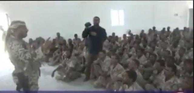ونشر القيادي الحوثي حسين العزي على حسابه في تويتر صورة للعميد طارق محمد صالح وهو يحاضر مجموعة من ضباط وأفراد قواته المتواجدة في الساحل الغربي.