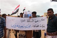 ورفع المشاركون في التظاهرة التي نظمها أبناء منطقة "نوجد" جنوبي المحافظة، أعلام اليمن وصور الرئيس عبد ربه منصور هادي، والمحافظ رمزي محروس.