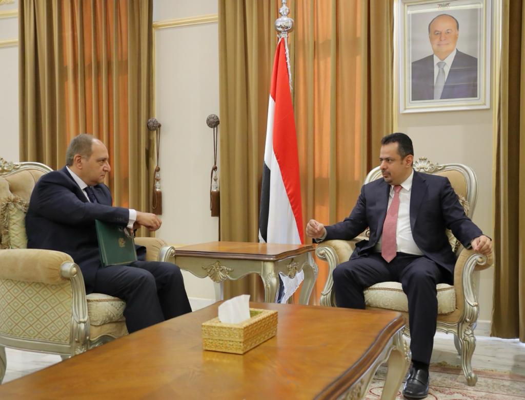 وتناول اللقاء، مستجدات الاوضاع على الساحة الوطنية، وعلاقات التعاون الثنائي بين البلدين والجهود المبذولة لرعاية اليمنيين وايلائهم الاهتمام اللازم في مصر، وتفعيل اعمال اللجنة العليا المشتركة، تنفيذا لمقررات الزيارة التي قام بها رئيس الوزراء الى القاهرة، إضافة الى المواقف المشتركة تجاه عدد من القضايا وفي مقدمتها امن البحر الأحمر وتامين الملاحة الدولية، وتفادي كارثة خزان صافر الذي تستخدمه مليشيا الحوثي للابتزاز السياسي.