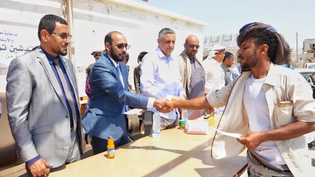 وثمن الوزير كفاين خلال عملية التوزيع بحضور وزير الثقافة مروان دماج ووكيل المحافظة الدكتور عبدالقوي لمروق، دعم المملكة العربية السعودية لليمن في مختلف المجالات..متطلعاً الى امكانية ادراج عدد من مشروعات الاصطياد الاساسية في الخطط المستقبليه.