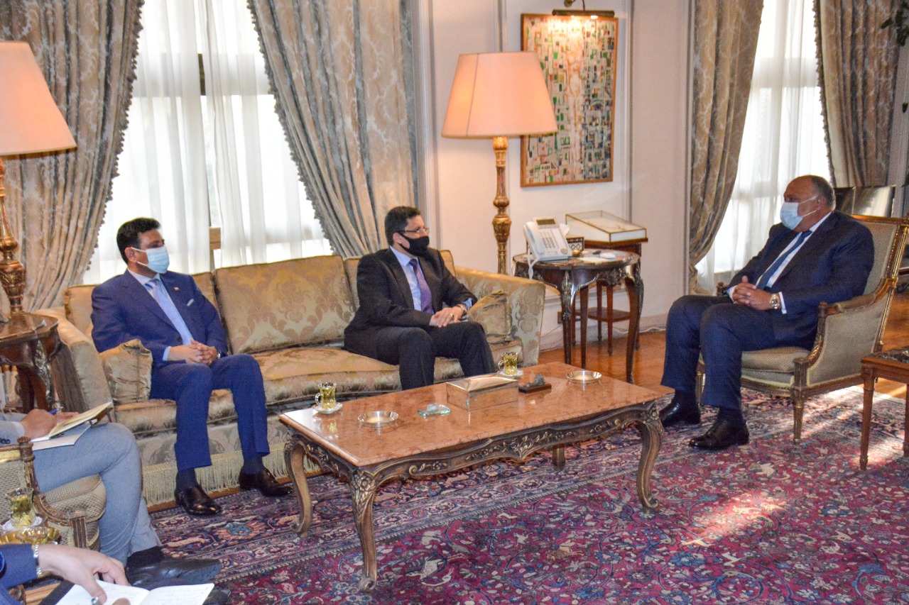 بحث وزير الخارجية وشئون المغتربين الدكتور أحمد عوض بن مبارك، اليوم، مع وزير الخارجية المصري سامح شكري العلاقات الثنائية وتفعيل اللجان المشتركة بين البلدين وعقد اجتماعات اللجنة العليا المشتركة خلال الفترة القريبة القادمة.