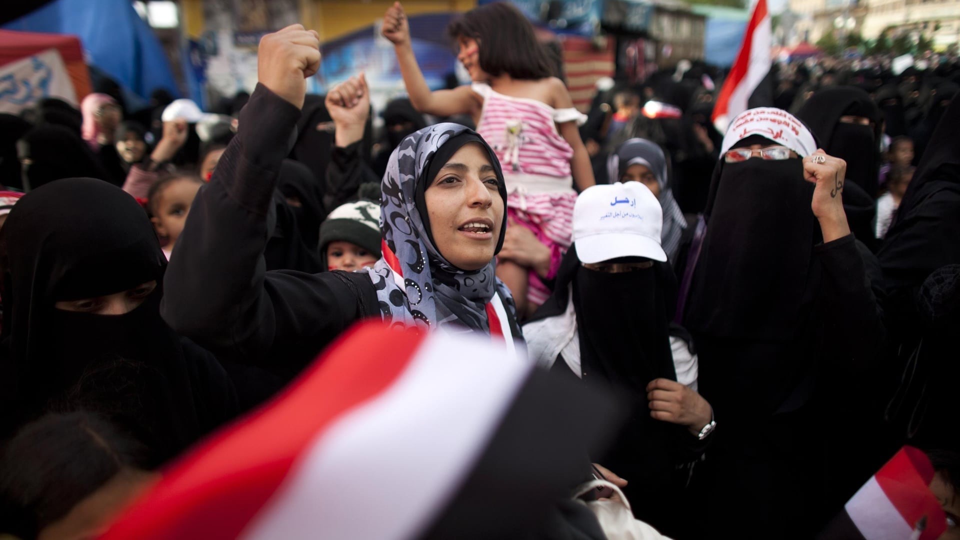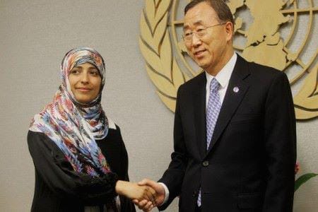 وتوكل كرمان ناشطة حقوقية يمنية تقود منظمة «صحفيات بلا قيود» التي شاركت بتأسيسها في عام 2005، أصبحت الواجهة الأشهر دوليًا للانتفاضة اليمنية عام 2011 والتي تعد جزءًا من ثورات الربيع العربي. في عام 2011، أطلق عليها بعض اليمنيين اسم «المرأة الحديدية» و«أم الثورة» وسميت بقائدة التغيير في اليمن ، كما انها شاركت في الحصول على جائزة نوبل للسلام لعام 2011، لتصبح أول يمنية، وأول امرأة عربية، وثاني امرأة مسلمة تفوز بجائزة نوبل.
