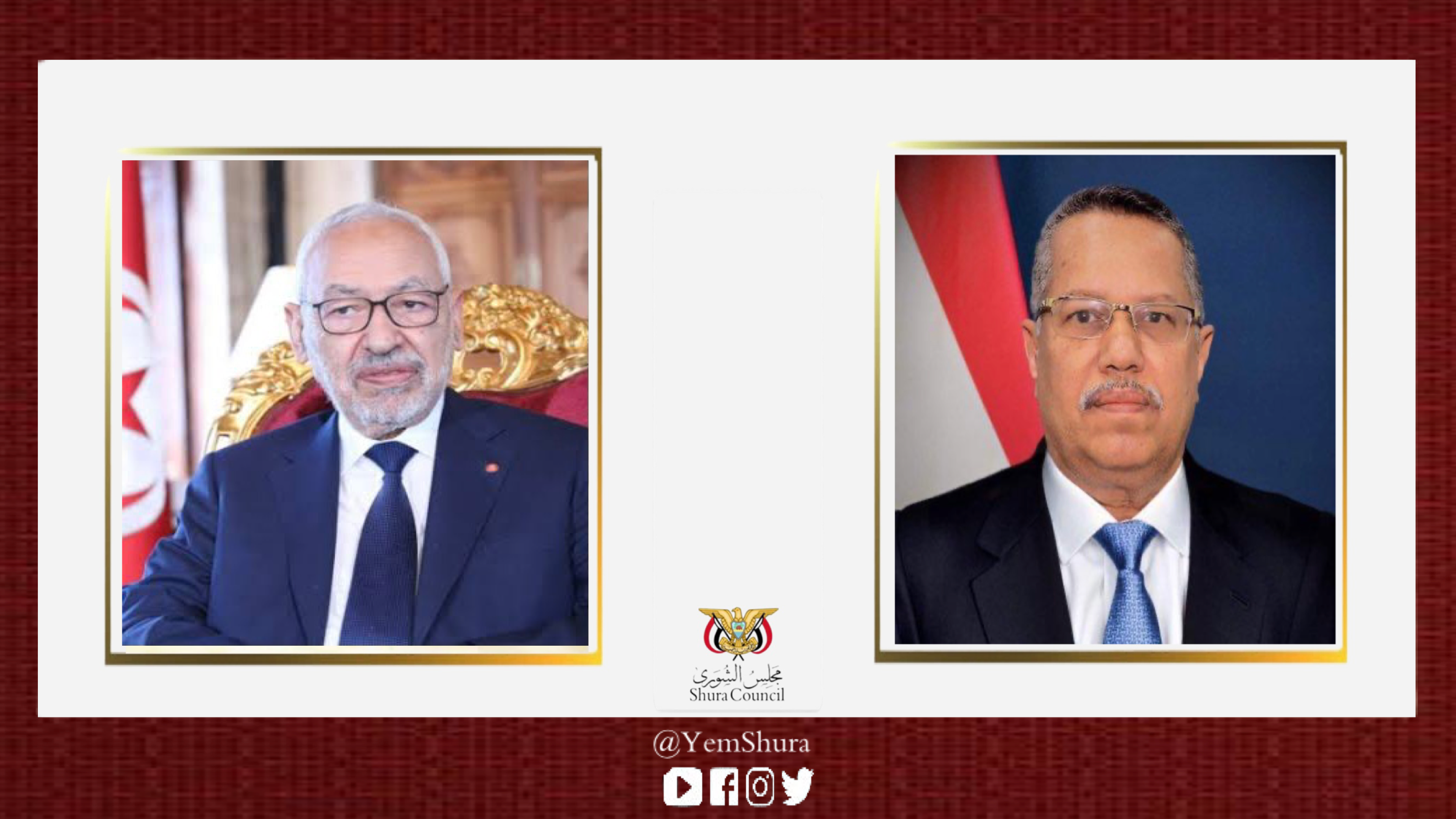 من جانبه بعث رئيس مجلس الشورى الدكتور احمد عبيد بن دغر برقية تهئنة لرئيس مجلس النواب التونسي راشد الغنوشي بمناسبة حلول شهر رمضان المبارك، متمنياً أن تعود هذه المناسبة وقد تحقق للبلدين والشعبين الشقيقين وللأمتين العربية والإسلامية التقدم والتطور والازدهار.