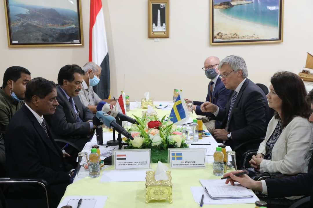 وثمن المحافظ دور السويد في دعم جهود السلام وانهاء الحرب في اليمن .. مستعرضا أدوار أبناء حضرموت وتضحياتهم في معركة القضاء على الإرهاب في مختلف مناطق ومدن ساحل حضرموت.