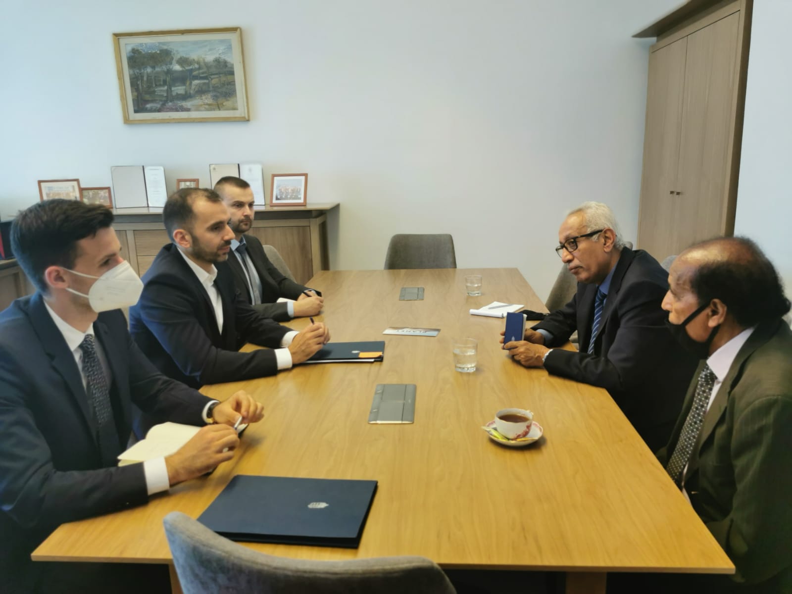 التقى القائم بالأعمال بالسفارة اليمنية في بودابست السفير أحمد ناجي اليوم مع سكرتير الدولة لشؤون تنمية الصادرات بوزارة الخارجية المجرية استيفان يو.