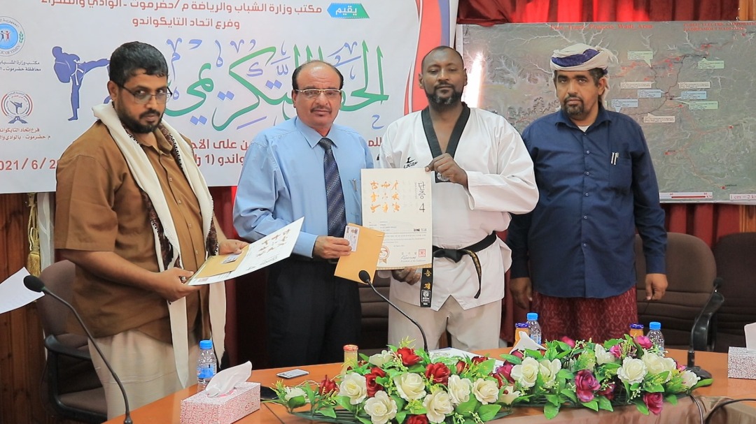 كرّم مكتب الشباب والرياضة وفرع اتحاد التايكواندو بوادي حضرموت والصحراء، اليوم، المدربين واللاعبين الحاصلين على الأحزمة السوداء الدولية في لعبة التايكواندو (1 ران – 4 ران ).