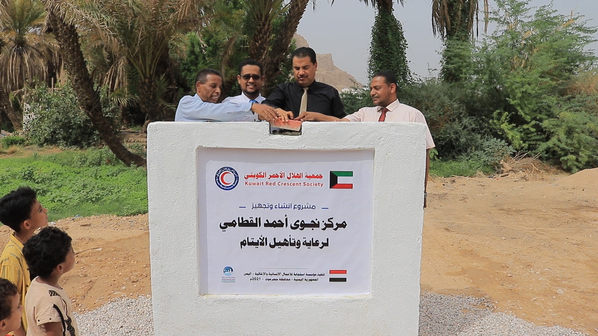 وضع وكيل محافظة حضرموت المساعد لشئون مديريات الوادي والصحراء المهندس هشام السعيدي، اليوم، حجر الأساس لمشروع إنشاء مركز نجوى احمد القطامي لرعاية وتأهيل الأيتام بمدينة سيئون محافظة حضرموت الذي تشرف على تنفيذه جمعية الهلال الأحمر الكويتي وتنفيذ مؤسسة استجابة للأعمال الإنسانية والإغاثية.