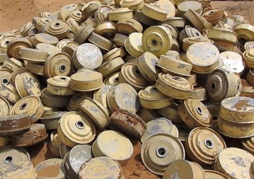 وتنوعت ما بين 7 ألغام مضادة للأفراد، و 1.013 لغمًا مضادًا للدبابات، و558 ذخيرة غير متفجرة، و3 عبوات ناسفة.
